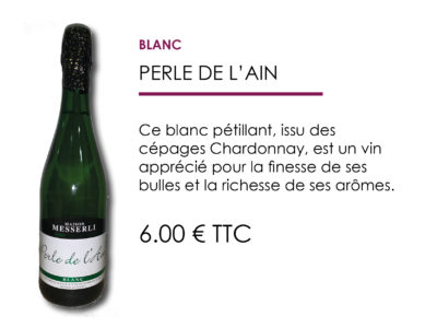 Vins et Jus pétillants Vous retrouverez l'intégralité de nos vins dans notre caveau à Cerdon. LES BULLES : Perle de l’Ain Rosé doux et secPerle de l’Ain BlancMéthode AncestraleRaisin Pétillant (100% pur jus et sans alcool) LES TRANQUILLES Coeur de roséGamay rouge « cuvée André » Détail et tarifs